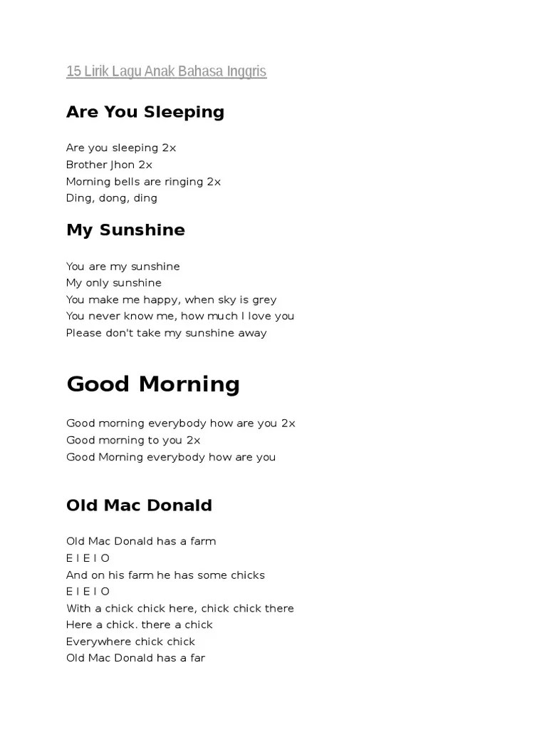 · bingo lagu bingo bercerita tentang seorang . Song lyrics can be used in relating to situations of the world around us (lirik lagu bisa digunakan untuk bercermin ke situasi nyata di . Old macdonald had a farm · 4. ٢٦ جمادى الأولى ١٤٤٣ هـ. Bunda bisa memilih yang paling sesuai dengan mereka. Kaset vcd original video 25 lagu anak play grup belajar bahasa . Lagu anak bahasa inggris bisa digunakan untuk belajar kosakata bagi anak.